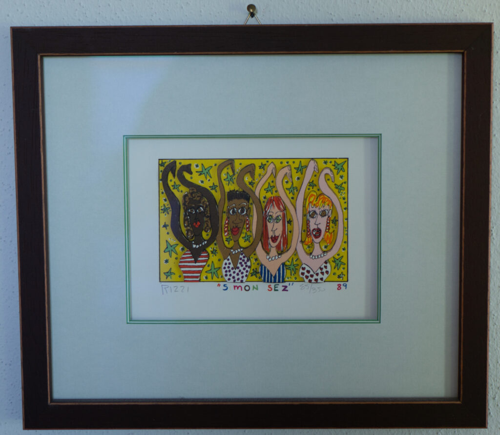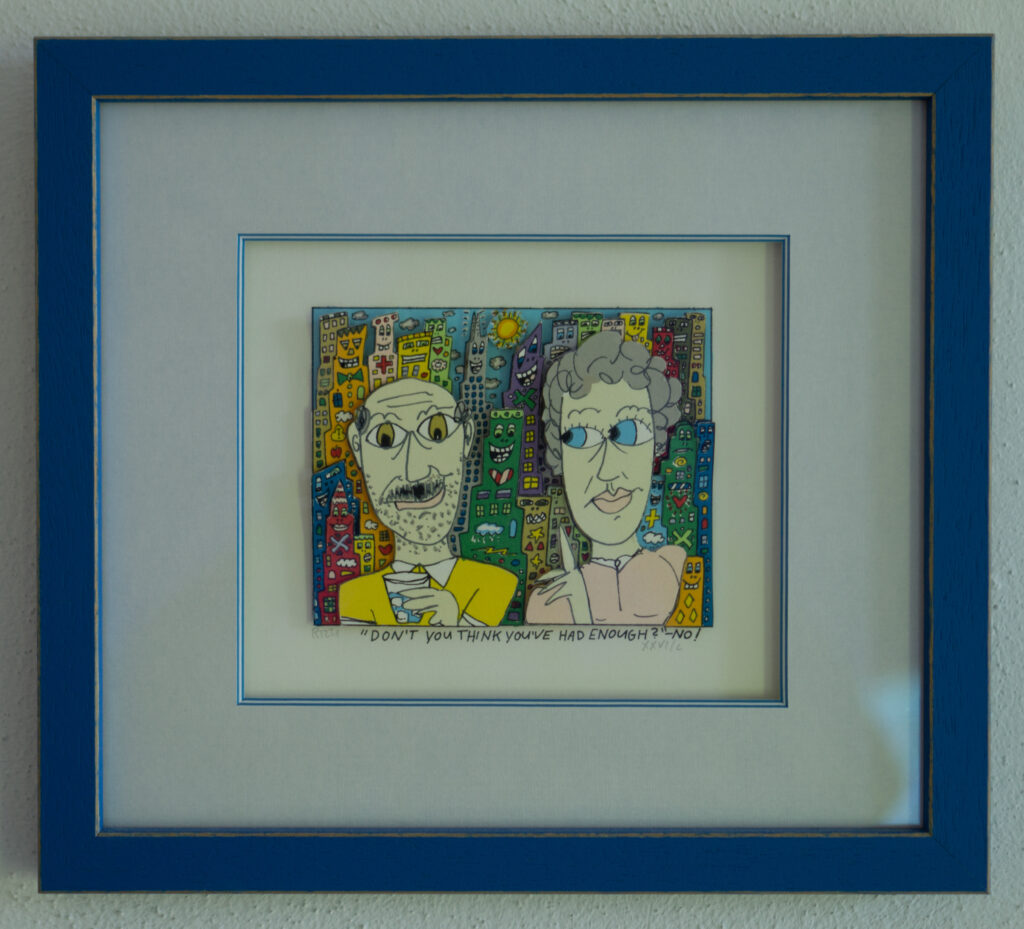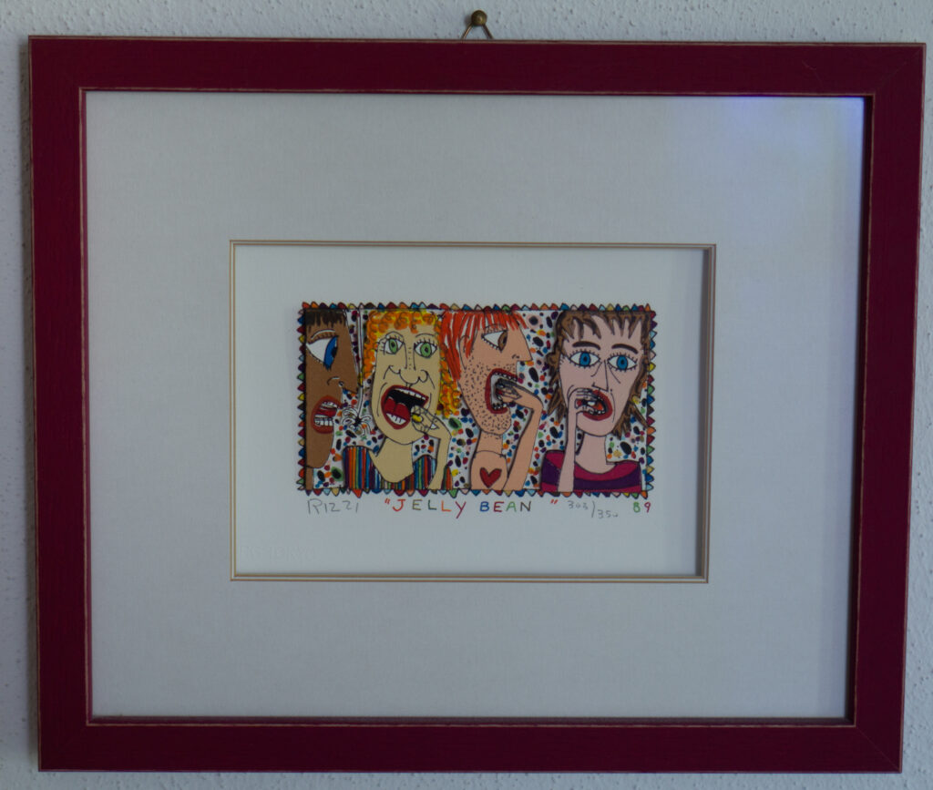 „Rizzi im Frizzi“ – so heißt mein neusten Kunstprojekt. Hier werden 12 James Rizzi Kunstwerke im Frizzi Weinhandel ausgestellt. Diese sind dort käuflich erwerbar. Alle Bilder sind handsigniert wurden hochwertig mit Museumglas gerahmt.